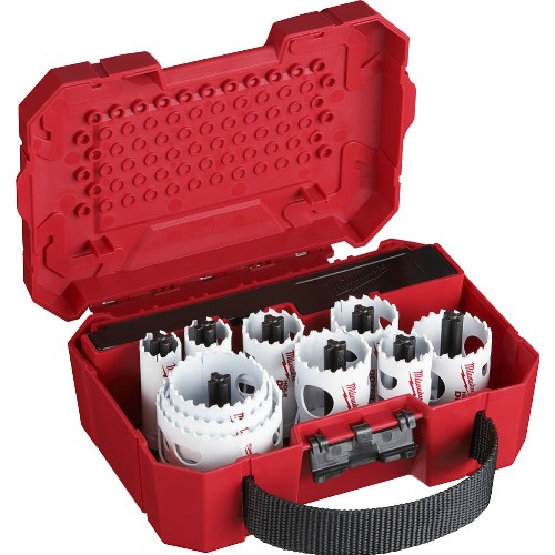3834-SET-86 Hålsågsats med de åtta vanligaste storlekarna för arbeten inom verkstad och VVS. Innehåller hålsågar: 25, 32, 35, 51, 54, 76, 92 och 114 mm samt hållare ARBR-1130 och ARBR-11152.